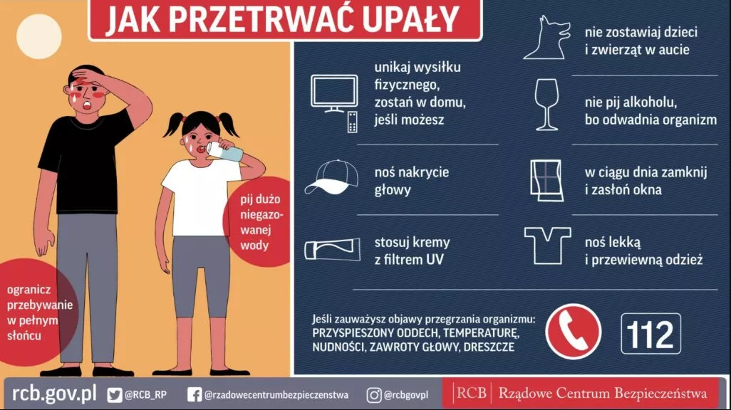 Pamiętaj, że upał jest szczególnie niebezpieczny dla osób starszych i dzieci. Trzeba również zadbać o zwierzęta, gdyż wysokie temperatury również u nich mogą prowadzić do przegrzania organizmu.