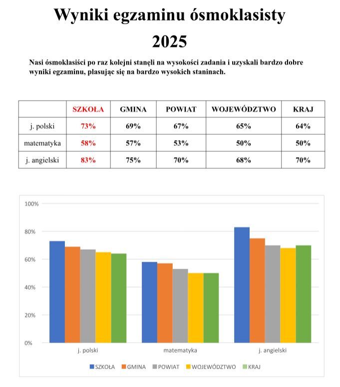 Zapraszamy do zapoznania się z informacją dotyczącą wyników tegorocznych egzaminów naszych ósmoklasistów.