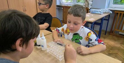 Dzieci z klas I - III w roku szkolnym 2025/2026 będą uczestniczyć w zajęciach Akademii Młodego Naukowca. 18.09 odbyły się pierwsze warsztaty chemiczne pt. “Czy warto pić colę?”. Warsztaty uświadomiły dzieciom jak dużo cukru znajduje się w napojach gazowanych i jednogłośnie stwierdziły, iż lepiej wybierać wodę. Uczniowie mięli okazję zbadać, w jakich produktach znajduje się witamina C oraz w praktyczny sposób zapoznać się z elementami pracowni chemicznej.