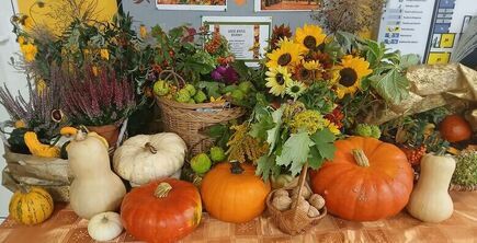 Jesień zawitała do naszej szkoły! A to wszystko dzięki wystawie zorganizowanej przez Samorząd Uczniowski ZPO Dys. Na korytarzu pojawiły się barwne bukiety, liście, kasztany, jarzębina, dynie i wiele innych jesiennych skarbów. Na prezentowanej wystawie jest tak kolorowo jak kolorowa bywa jesień. I chociaż na dworze robi się coraz chłodniej , a dni są coraz krótsze, to jesienny nastrój wyczarowany przez autorów wystawy nie pozwala nam się smucić.